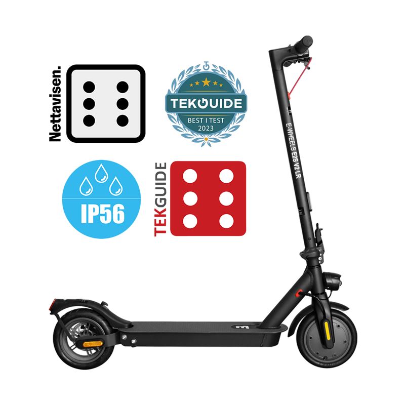 E2S V2 har i en årrekke blitt kåret til en av de beste el-sparkesyklene på markedet – blant annet med terningkast 6 hos Nettavisen og anbefalinger fra Tek.no og Dinside.no. Dette er et resultat av kontinuerlige forbedringer og erfaringer fra en stor kundebase. Her er de største testene av standardversjonen E2S V2: