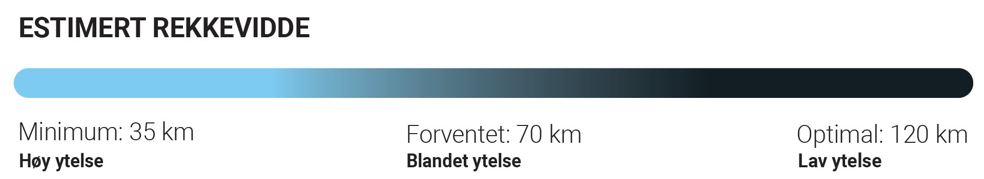 - Opptil 120 km rekkevidde - 630 Wh batteri